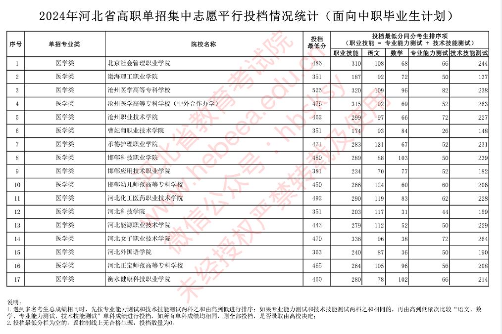 2024年河北对口高考医学类专科批2024年河北对口高考医学类专科批录取分数线平行志愿投
